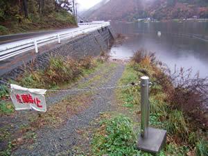って感じで、去年秋の爆発的増水はおさまってましたが、まだちょっとだけ水位が高い感じ。放水は停止中なので、しばらくこの水位でしょうか。水はゆきしろの影響か笹ニゴリでした。