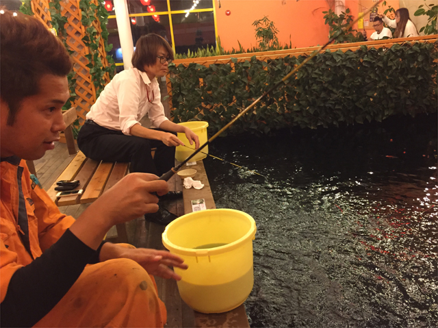 続いて金魚釣りの部。こちらはより一層フィネス。