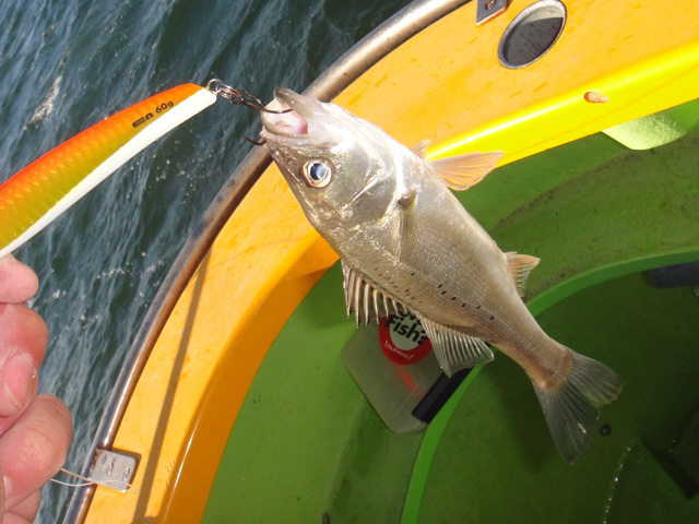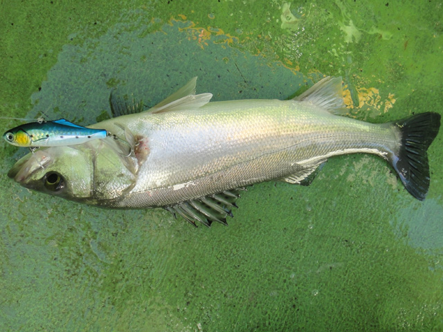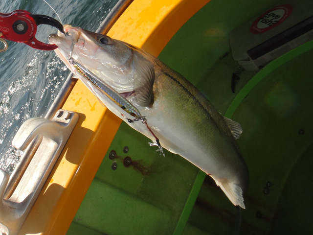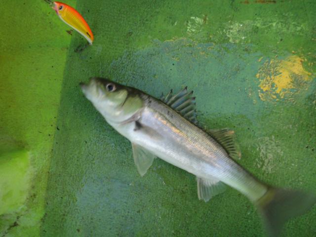 トレブルフックなので、何回かスレがかりするほどの魚影の濃さ。っても、サイズはセイゴクラス。