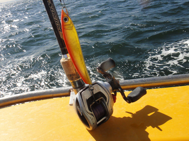 大型船のジギングなので、マンメイドをタイトに打つのではなく、オープン・ウォーターの釣りです。