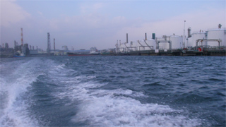 恐らく、湾奥から外に出ようとしてたんだと思われるスピードで走ってたら、出口の入り口?の狭い所で鳥山&ボイル祭り開催中。ボート急停止で即キャスト。
