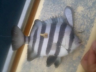 したらいきなりビッグバイト。ズガガガガッガガガガガッっつー凄い引きで上がってきたのは29cmのビッグワン。あーゆーカタチした魚を釣ることはあんまり無いんで、新鮮な手応えです。