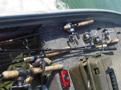 んで、現場で行ってみると流れが殆ど無かった。更にボートを降ろしたら今までにないクリアな水。クリア過ぎず濁り過ぎず。イワユル笹濁りっぽい色。50cmくらいまではボトムが見える。ワームでもプラグでも一番釣りやすそうな(騙しやすい)色な感じでワクワク!
