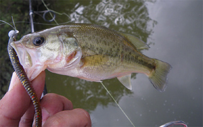 これ以上遡ってもイマイチな感じなので、Uターンして対岸を下る。こっちも3艇流した後だし、スピナーベイトはダメっぽい。なのでワームで流す。