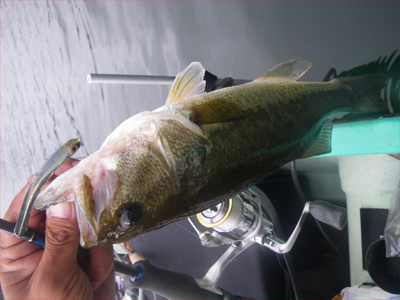 釣れたけど、狙いとは大違い。しかもタイミング的にフォール中に喰ってた感じ。今日はこの水深じゃなくて、4~5mで釣りたいんです。最も苦手とする水深だけど、この前の野尻湖でプチ・マイブームなキャロで釣りたいんです。
