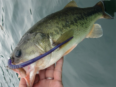 で、スピードクローも中層で食った感じなので、この前の八郎でマイブーム化したストレートロングワームのジグヘッドを投入。トリックワームは在庫切れなんでロボストレート7インチに。