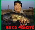 しかし、隣のポイントで釣っていた佐武選手に様子を聞いてみると45cmを筆頭に既に3本取っているらしい。相変わらず感じが悪いヤツだ。