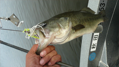 ヤマセン5の031カラーで一発です。簡単すぎるので即封印。やっぱりバズベイトですよ!(中ニ病)