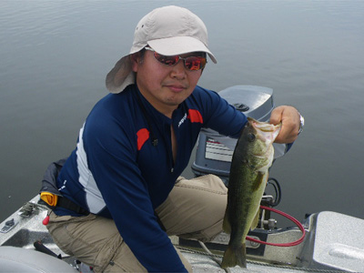 Kさん大男なのと外人持ち(笑)するので小さめに見えますが、まぁまぁ良いサイズです。そしてなにより、このバスも色が黒い!いかにも「居着きです」的なコントラストが低くて白っぽいバスとは大違い。
