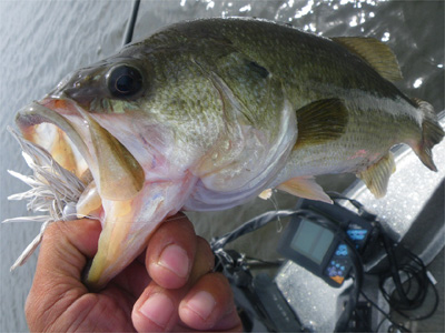 ムムム・・けっこう真面目に釣りをしたんですよ。2人乗りなので、いつもやっているようなバズ流し系シャローはほとんどやっていなけども。表水温も朝イチの20℃から最終的には26℃まで上がったし。午後からは程良くカレントも発生したし。秋田にドンピシャだった前日の低気圧が去って晴れちゃったってのはあるんだけども、それにしても7月に一日やって4本ってのは過去に記憶がない感じ・・・・。前日は例のお助けスポットに救われたけど、今日は俺そこで1匹も釣ってないし。