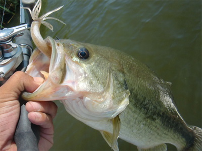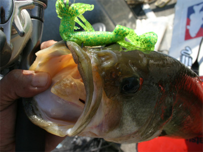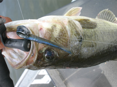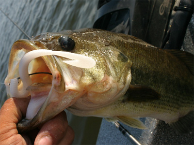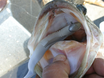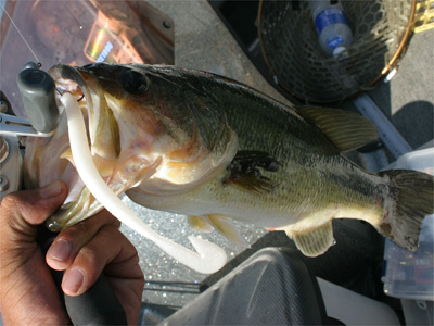 バスを飽きさせないように一投毎にルアー・ワームをチェンジ。これは喉奥に掛かっちゃってちょっと流血。
