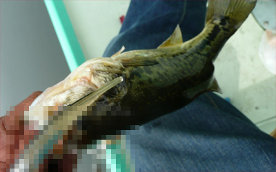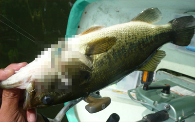 とりあえず今回はパスして先へ。長い禁漁区をパスして国道下へ。ここでもバスの生る木を発見。4バイトくらいあったけど、ボートが流される関係でスラック処理が出来ず全部ミス!悔しい~~~。ま、たぶん子バスだったと思いますが。