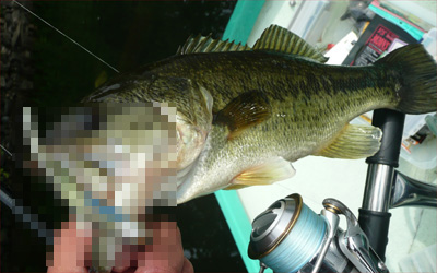 そんでもって、またまたもう1匹ヒットしたけどバレちゃった。隣の桟橋にはヘラ師が数名。先端で釣りしてた人は釣りビジョンでもよく見る有名なお方。特徴のある声ですぐ解った。オレがバチャバャやっていたら、有名人「鯉か?」 周りの人「バス釣ってるんですよ」ってな感じ。そのオーラに負け気味で(笑)、いつもの10倍以上距離を取ってヘラ師を迂回。フットターボは辛いぜ!