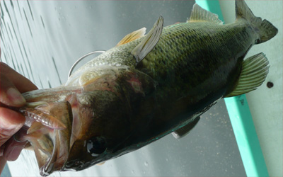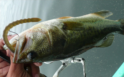 つーことで出船そうそうヒッツ!ワーム飛んじゃったけど、ジャッカルのスーパーピンテールで一撃。