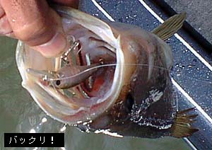 因みに、ベビシャをドラッギングしてる時ジャークしたりロッドを送ったりしてない。ただのドラッギングだったんだけど、もーベビシャ丸飲みの高活性。喉の奥のコーモン見たいなとこにリアフックが刺さってたよ。