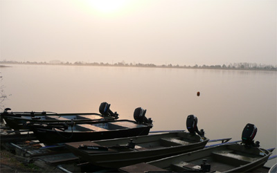 ボートの進行方向に50mづつ逃げては止まるカワセミと一緒に上流へ遡る。けど、なんにも釣れず・・・。