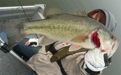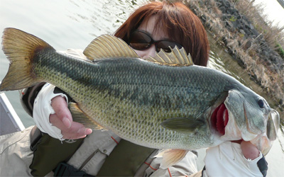 でも、今度はヨメにビッグバイト。ヒットシーンを動画で撮っていたけど、それどころじゃない走られっぷり。ボートの反対側でジャンプしてたし(笑)。スピニングなのでヒヤヒヤだったけど、なんとかキャッチ。50とは行かなかったけど、今回最大の48cmのグッドプロポーションでした。