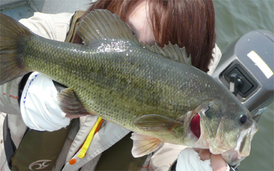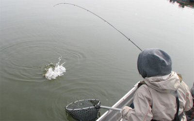 もう一回気合い入れてキャスト!したらネガカリorz。ボートを寄せて回収に向かう。そしたら、ボートが通り過ぎたとこでヨメにヒット!ピックアップ直前に食ってきたのでバレちゃったけど。