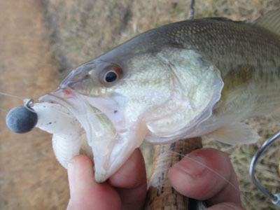 ってことはまだザリガニは動き出してなくて小魚を食っているってことでしょうか。なんからの理由付けが無いと気持ちが持たないんで、そう思うことにして白いチビアダーのジグヘッドに。
