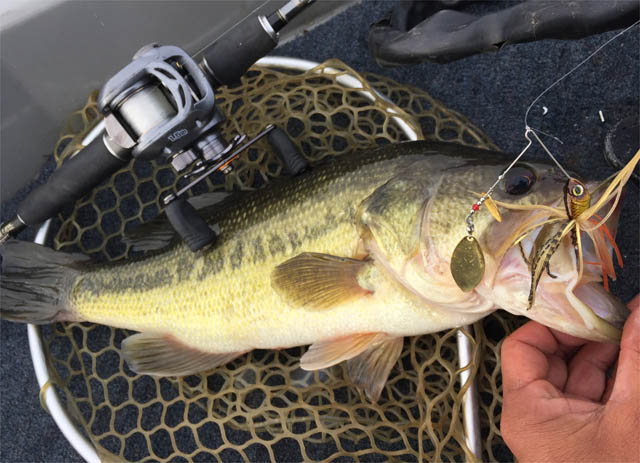 シャッドテールのマキマキしてて、たまに水面に倒れている枯れ葉っぱを乗り越えるときのバイトは過去にも何度かあって「こんな寒くてもまーまー浮いてるやついるんだなー」っては思ってた。けど、今年の4月に行った時はそれがめちゃ顕著。ガマ帯を釣るにしても、スピナーベイトのほぼ表層引きでバイトが多かったんです。ボトムより上層の水温が高いとか、エビハゼではない、小魚系ベイトを意識してるのか。理由はどうであれ、俺が思う以上に上に浮いてる(もしくは上を意識してる)バスが多いんだなーって勉強になりました。いや、水のキレイなワカサギレイクの春では当たり前のことだけど、濁り水の八郎でもそれがあるんだなーって。