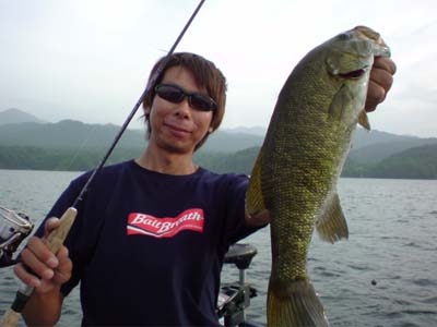 まともなサイズ狙いの沈める釣りになるとさすがはプロ。桧原湖ではスーパーキッカークラスをキャッチ。