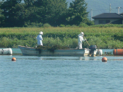 ちょっと前に外来のウィードがえらいことになったそう。その影響で今年も藻刈りをしています。去年に比べてウィードがかなり少ないらしい。