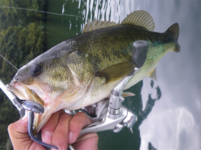 これが、この釣りの難しい&ハガユイところ。水面0cm~数センチならバスを騙せても、ちょっとレンジが下がると途端に見切ることがしばしば。