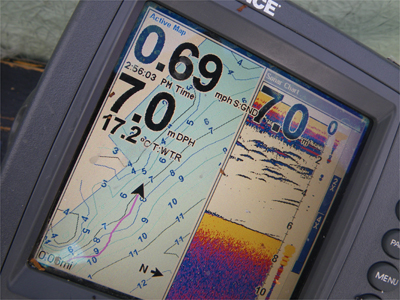 この日も基本的には弱い風が吹いてて、無風になったのはほんの僅か。その隙と他のボートの隙を狙って表層の釣りをしてるんですが、それ以外は基本的にディープの釣りをしています。