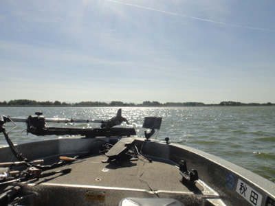 そんなわけで前日の桧原湖で昼寝し過ぎにより夜眠れず3時間睡眠で秋田市内からGo86。振動子のセッティングやらなんやらで9時半に出船!