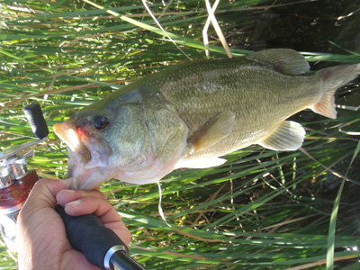シャロークランク、スピナーベイトを巻きつつも要所要所はライトリグを投入してツネで子バス1本キャッチ。