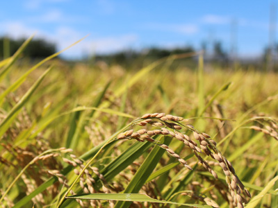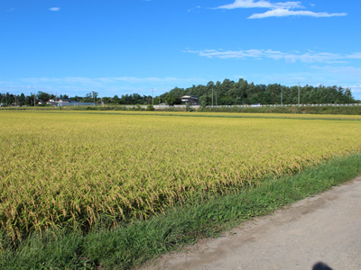 はい。今日も快晴。稲穂が美しいです。