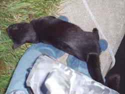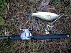 最後はインターチェンジが近いという理由でキヨシへ。久々に来たけど、水位が高くで水も良い。ちょっと期待できそう。もう最後だからと手広く素早くイラプション1/2oz投げまくり。しばらくしてピックアップしようと思ったその瞬間、ココ!とバイト、おー逃した!けど、追い食いしたのか、またまた足下でココとバイト、うりゃーとフッキング。するとその勢いで子バスが飛んできた。フックも外れた。あーアブねぇアブね。やっと俺も関東で午後のバスを釣れるようになったぞ。ウレしウレしすぎ。サイズはちょっと...だけど、かなり嬉しい1匹だった。その後暗くなるまで調子こいてスピナーベイトを投げまくるがそれっきり。ネコにやたらじゃれつかれただけで終了。