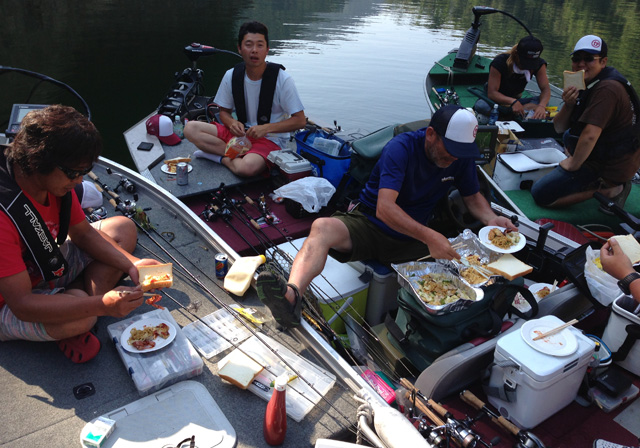 いつもはコテージで朝飯食べてから出発ですが、今日は早出なので、湖上ブレックファスト(・ω・)ノ