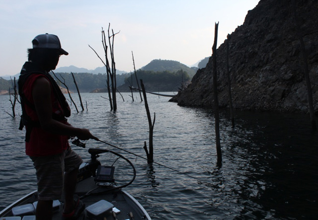 最後はダムサイト付近で沈める釣りをじっくりやることに。