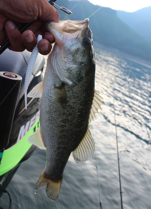 ワームではなかなか口を開けられません。そこで伝家の宝刀「ソウルシャッド」を手にした山木さん。さすがに一撃でヒット!