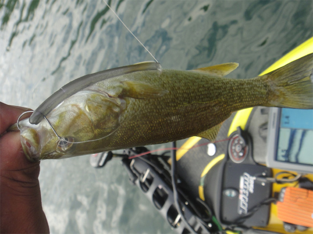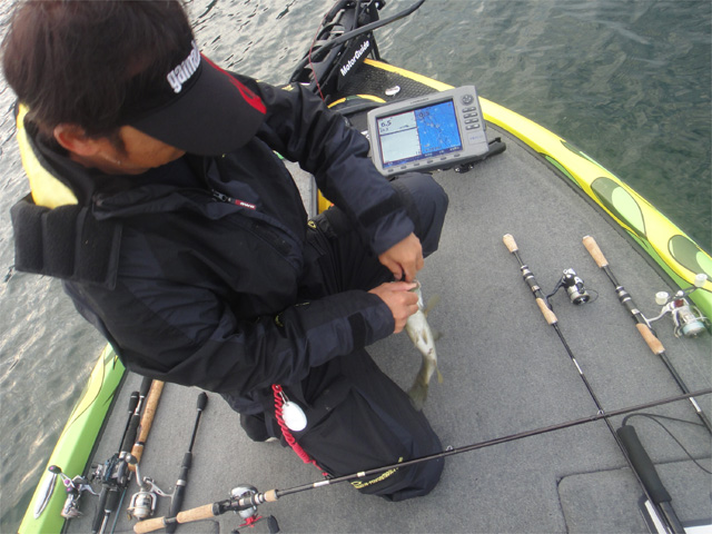 で、オレがいっぱい釣るもんだからボスが「なにで釣ってるの?」って。チビアダーのジグヘッドですよ、って言ったら、その時は軽くながされたww