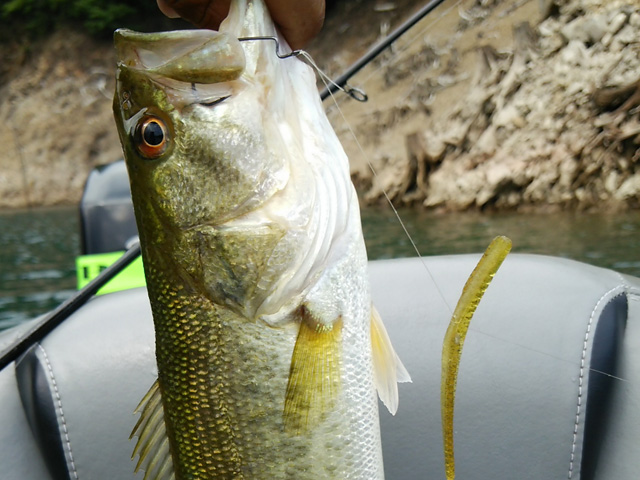 根がかりが酷いんで、ケイテックのガードがいっぱいついてるジグヘッドにリーパーをセットしたやつで。