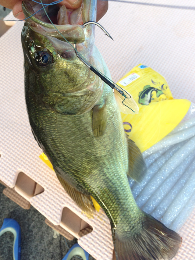 いつもなら、まーいいやってバズを続けるオレですが、この日は素直にレンジ下げ。ワーム飛ばされちゃったけどキビアダーで一段したをミドストしたらっ