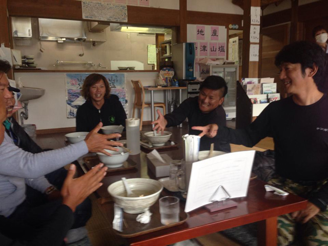 狂犬さん、宮本さん、泉さん、吉岡くん、片岡くん、小野さん。食べ終わったらじゃんけんが始まる。そう、全員のラーメン代金を賭けたじゃんけん大会。