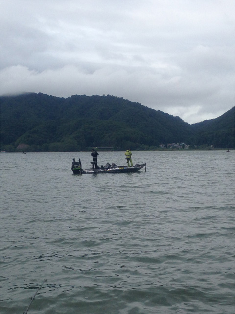 朝二に入ったのは、大会2日目に馬淵くんが6キロ釣ったヌカ裏。ここではスピナーベイトをキャスト。高久さんが2本ほどゲット。