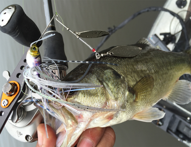 橋をくぐるとき、カレントが効き始めていることに気づいたので、橋周りをスピナーベイトで。