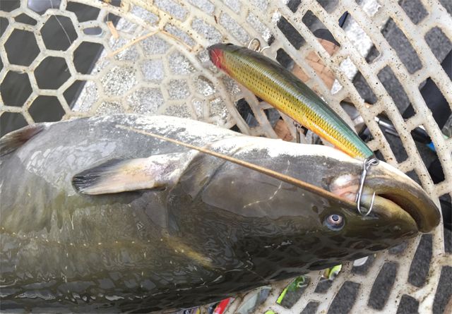 ぶりんぶりんのコロンコロンのでっかいナマズでした(-ω☆) いぁしかしよく肥えてるわ。ベイトフィッシュとフィッシュイーターの居場所には辿り着いたな(-ω☆)