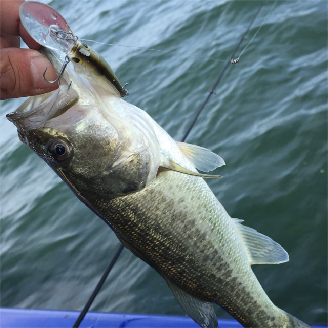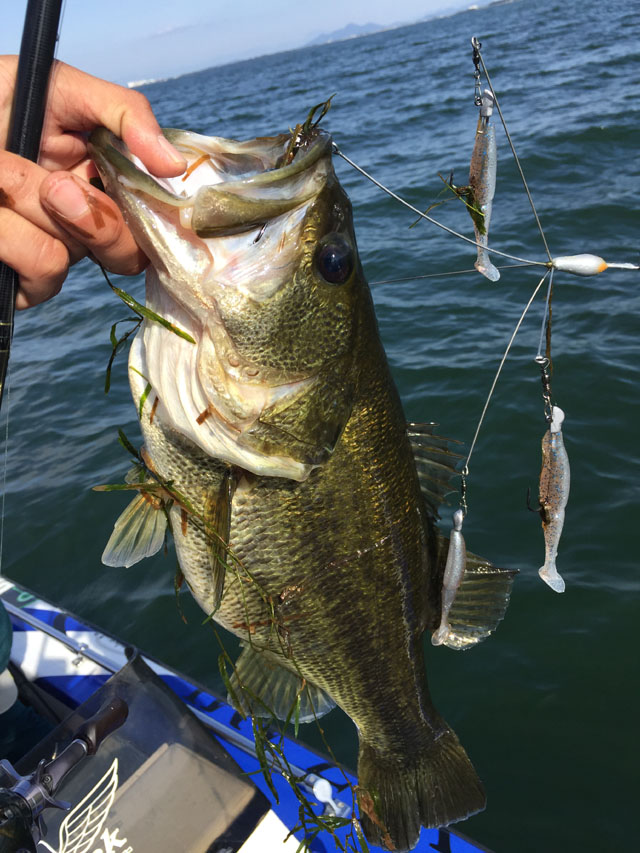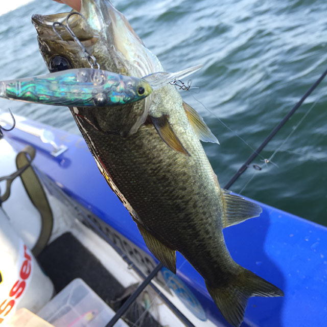午後からはいい感じの弱風に。サイズ狙いで3mくらいをスピナーベイトとかアラバマリグで。