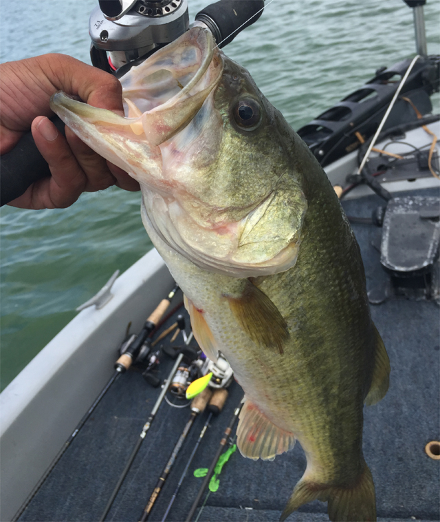 スモラバまでスローダウンして初夏に何度かいい思いをしたアベラバ+ワッキー的なリグでのエビピョンピョンメソッドを試したらなんとか1匹!