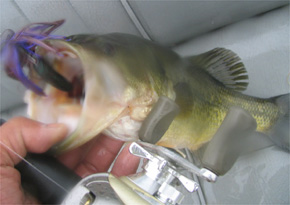 角のガマエリアでゲストのスピナーベイトにグッドコンディションのプリがヒット!お!こっちはプリなのか?続いてオレのプレデターにもブリブリのプリがヒット!抜きあげしたらロッドが弱くて船縁にゴン!でオートリリース(涙)。まーいいっか。東部とは明らかに魚が違うぞ。