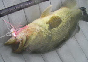 すぐに1本目が来たけども、30チョイの痩せた白バス君。ここは魚影が濃いので、この釣りを続けたら数は出るだろうけど、コンディションがイマイチ。どーすっかなーと悩む。