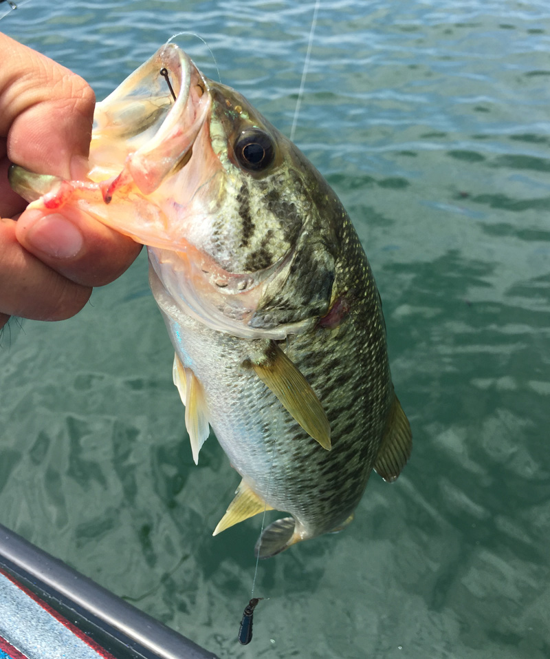 そして午後からはカナダ藻の中にリーダーレスダウンショットを入れてく釣りです。これは琵琶湖の釣りの中ではかなりのハイレベルな釣りで、アングラーの技量が問われます。もちろんオレは釣れませんw だって難しいんだもん。ロッドに伝わる感触だけで高さのあるカナダ藻を感知し、その中にリグを落とすんですよ。そもそもウィードの釣りを避けているオレにとってMAX難しい釣り。去年もダメダメでした。