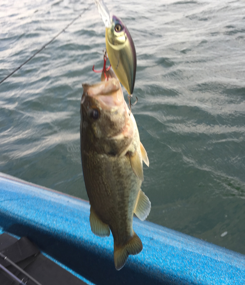 午後からはやや風がでてきて薄雲も。ここからはクランクベイトを巻く時間。タックル&ルアーをフルレンタルでトライ。