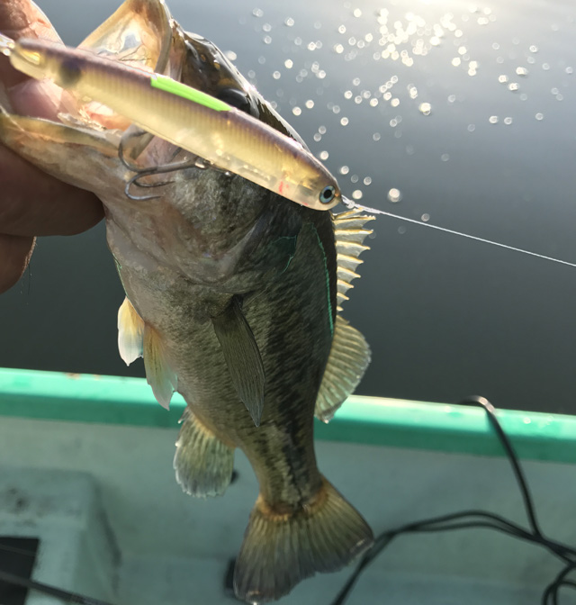 コイも似たような行動してるんでちょっとドキドキ。よかったバスで。ここらは水面にデッドリーワカサギが稀に浮いてるし、たまにワカサギのプチプチ波紋が沖目にでたりなんだり。ボトムの釣りしてるけど落ち着かないw