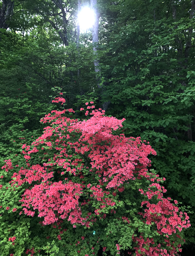 八重桜はほぼ終了で今はヤマツツジが見頃です。ヤマツツジとバスのスポーニングがだいたい同じタイミングです。